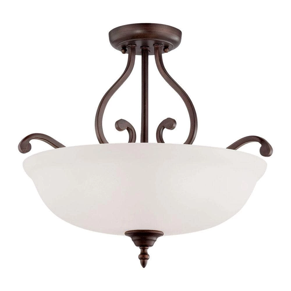 The Courtney Lakes Collection offers the classic inspiration with the swirl designs in the fixtures down to the wall sconce. Nothing left off of this eye catching collection finished in vintage iron or rubbed bronze. The turinian scavo glass shades, bell shaped, will give you that crisp clean feel while illuminating any area.