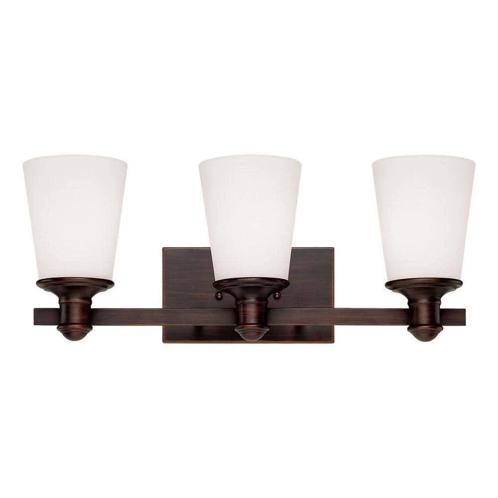The Cimmaron Collection made from premium-quality material with a rubbed bronze finish. The cylinder type etched white glass shades to enhance the design of the fixture. Will complement a variety of home styles and decor.
