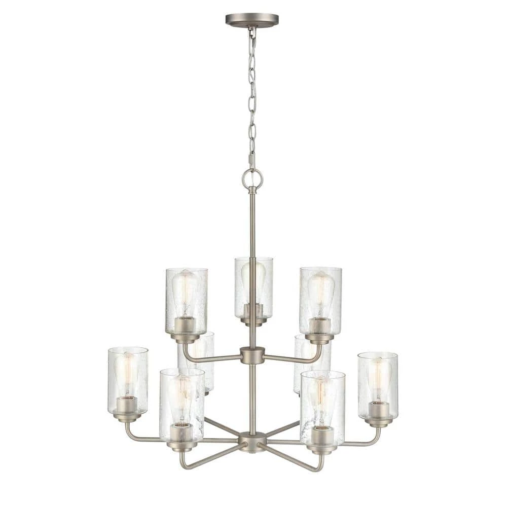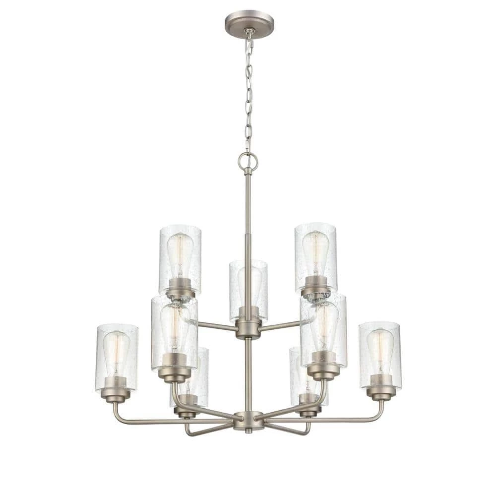 The Moven Collection elevates bold simplicity to a whole new level of design. Strong, elegant lines are set against handcrafted style seeded glass, creating an overall effect that is both reined and striking. The collection is available in either matte black or satin nickel .nish. Bulbs must be purchased separately.