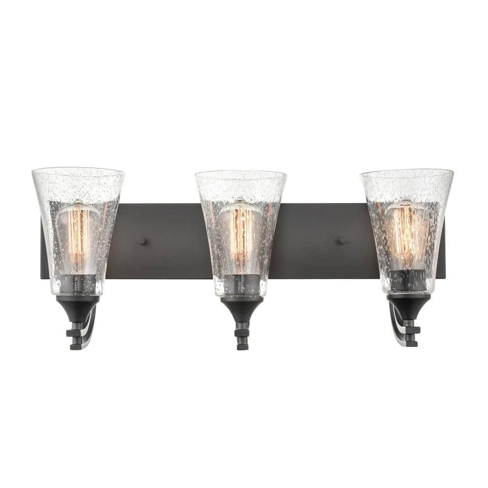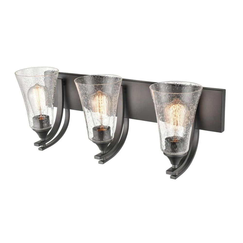 Natalie 24 in. 3-Light Matte Black Bathroom Vanity Light with Clear Seeded Shade by Millennium Lighting