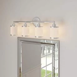 4-Light Chrome Vanity Light with Etched White Glass by Millennium Lighting