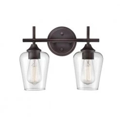 Ashford 13.75 in. 2-Light Rubbed Bronze Vanity Light with Clear Glass Shade by Millennium Lighting