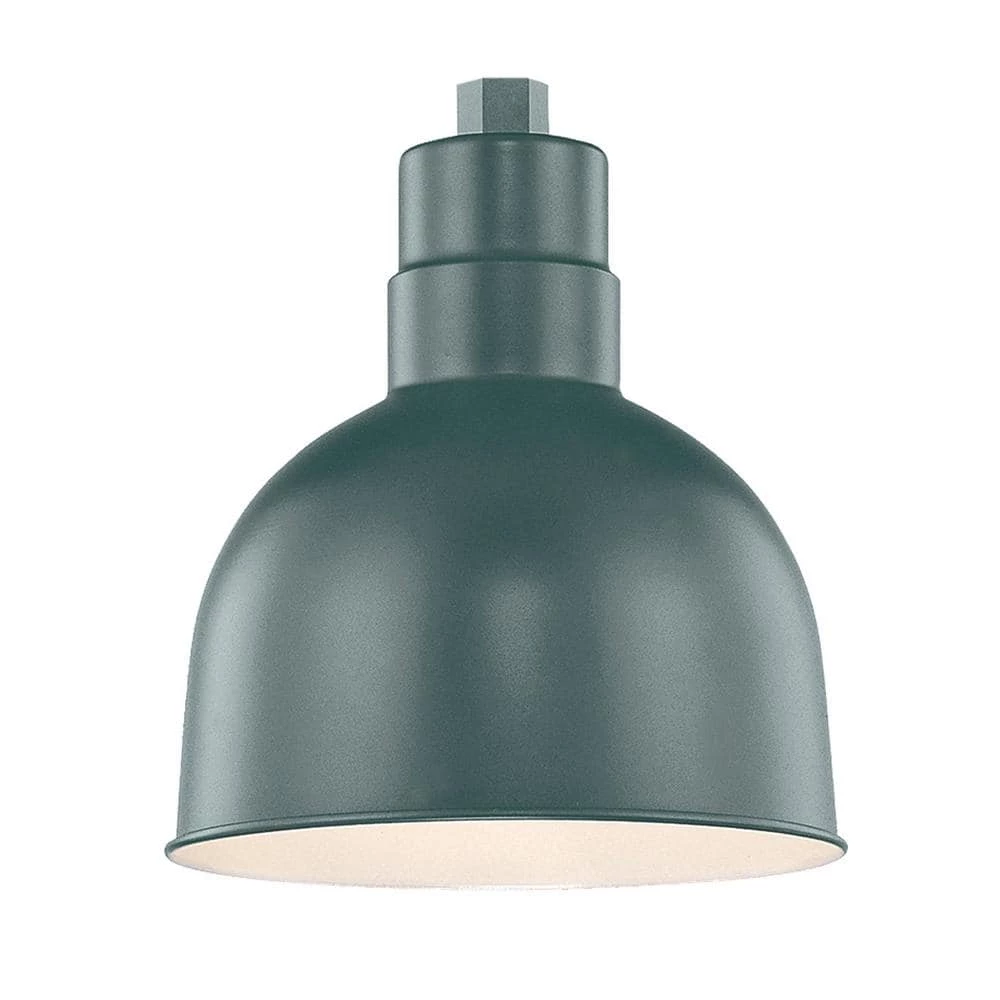 R Series 1 Light 10 in. W Outdoor Dome Shade. Durable steel construction. Fixture is capable of being dimmed with compatible dimmable bulbs (not included). UL rated for damp locations. Mounting hardware (stem & canopy) is sold separately.