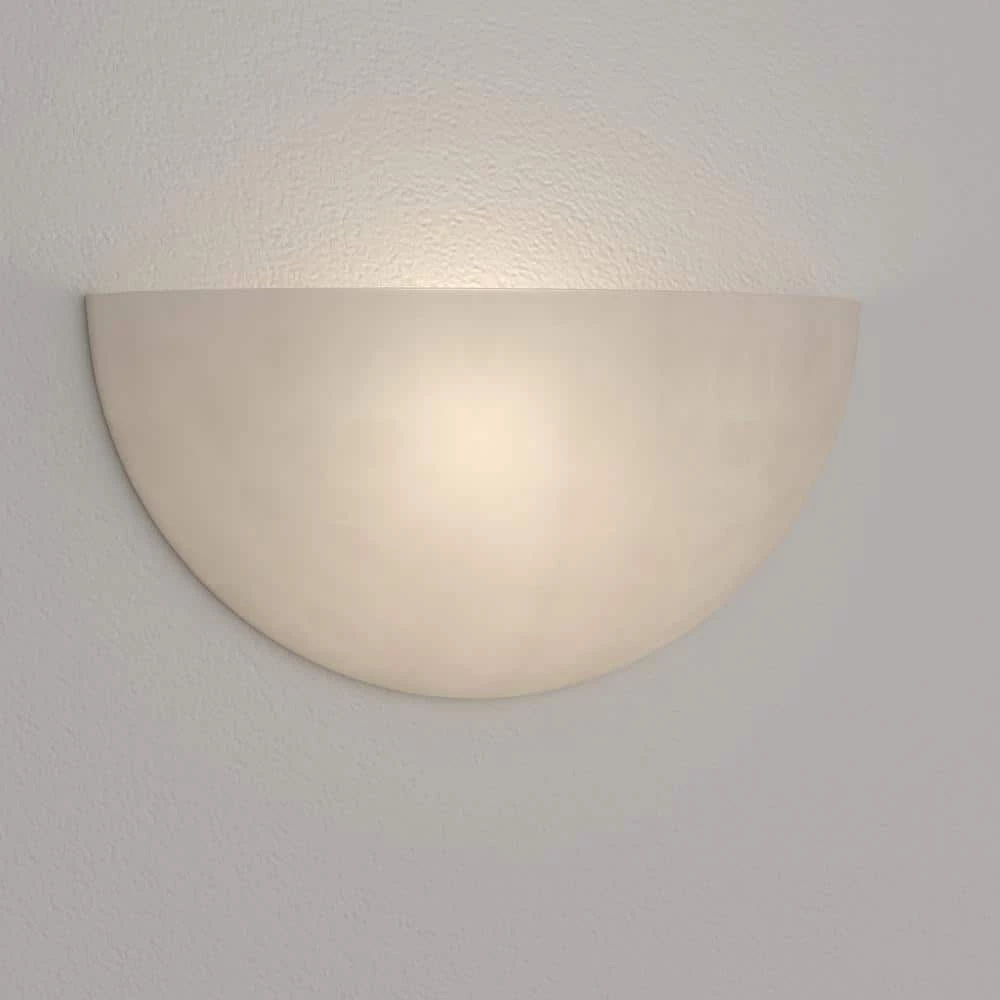 This is a unique alabaster wall sconce perfect for many applications. The alabaster glass provides ample warm light to brighten any hallway or stairwell. Not too large and not too small, this wall sconce is sure to fit where needed.